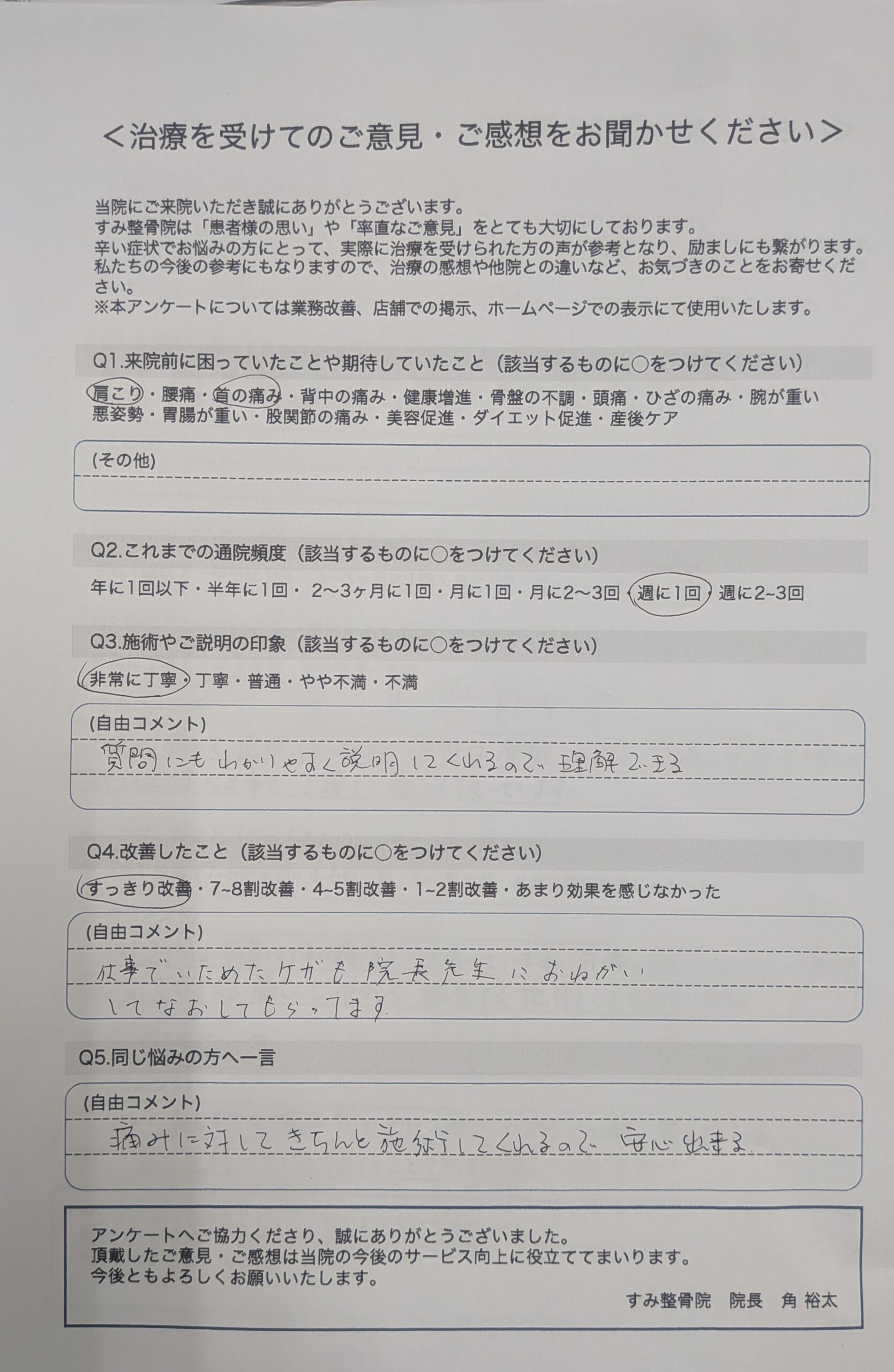すみ整骨院からのコメント
