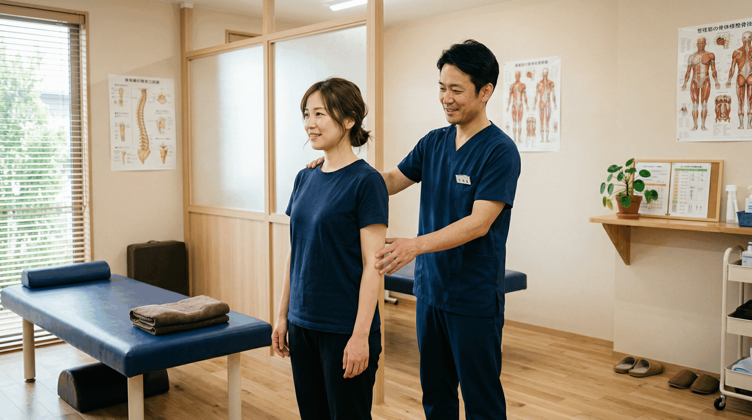 肩こりや腰痛はもちろん、産後の不調や五十肩など、女性に多いお悩みに対してもご相談を受け付けています。国家資格を持つ専門スタッフが、体調やお悩みに合わせて無理のない施術を行うため、初めての方でも安心してご来院いただけます。